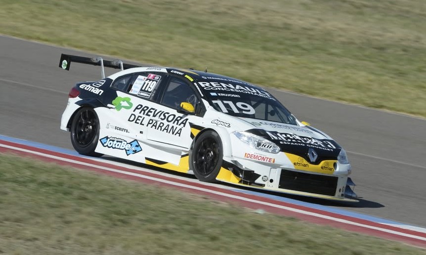Los mecánicos del ACRA Ambrogio Racing tuvieron que cambiar el motor del Renault Fluence N°119 del correntino, que con una unidad motriz de repuesto logró un buen lugar de partida.